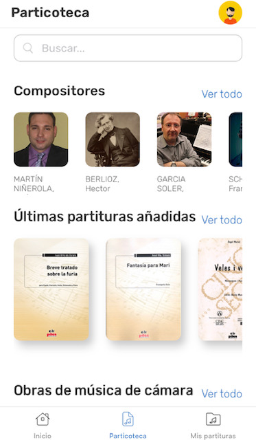 - Tienda de partituras: Donde las editoriales ponen a la venta las partituras y el usuario puede adquirirlas mediante un sencillo proceso de compra